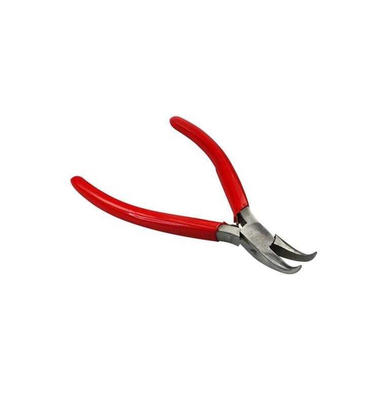 ALICATES 1/2 CAÑA CURVA 115 mm Alicates de punta en forma de ½ caña curva, de excelente calidad para uso general. Sus puntas curvadas son lisas y su interior sin estrías para evitar marcar la pieza. Están fabricados en acero.