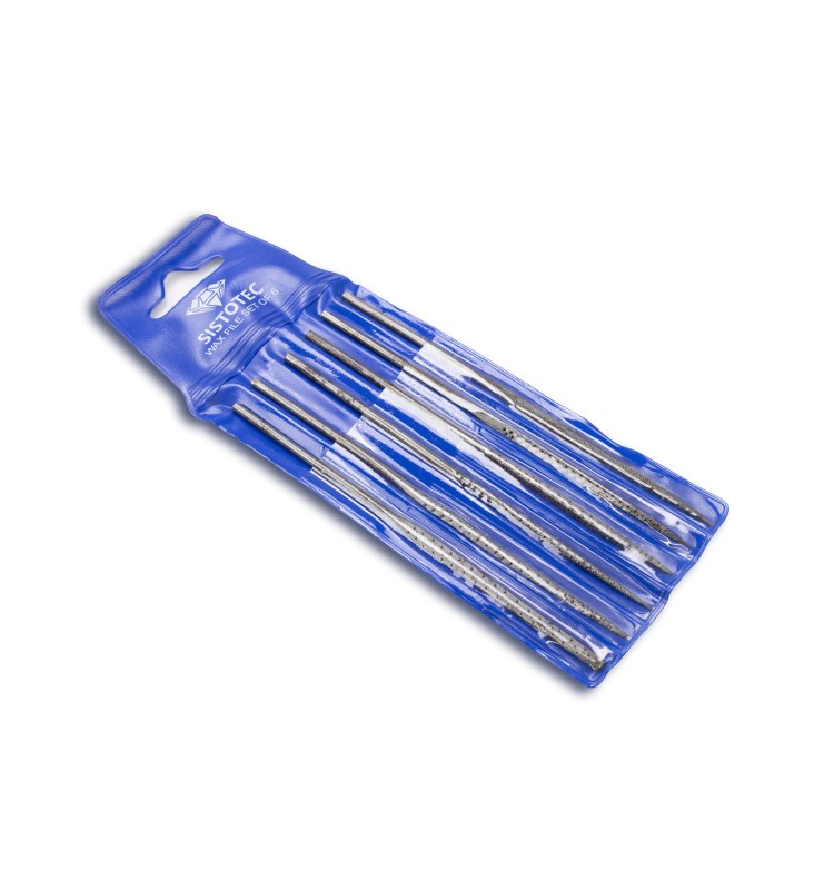 JUEGO DE 6 LIMATONES PARA CERA Juego de seis limatones de precisión que incluye las formas redonda, cuadrada, plana paralela, plana con punta, triangular y media caña. Especialmente indicadas para utilizar con ceras, cuentan con unos dientes gruesos que permiten desbastar la cera con rapidez y facilidad.